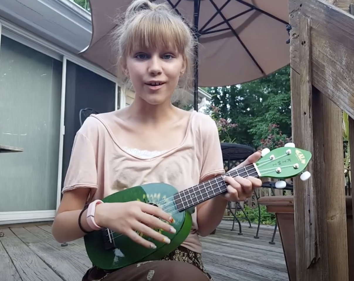 On the porch with the green Kiwi Ukulele. Grace's rendition of Elle King's Ex's and Oh's earned praise from Elle King herself. (se notes in the song details)