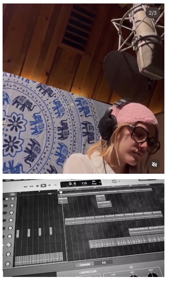 Grace was in the studio recording new music. She posted two snippets of new songs. The first one played during a production session (so work in progress) was the first glimpse of what turned out to be "My Pledge," written for her role as Vesta Sweetwater in Francis Ford Coppola's 'Megalopolis'. The second played back from a computer was an untitled song we never heard more about.