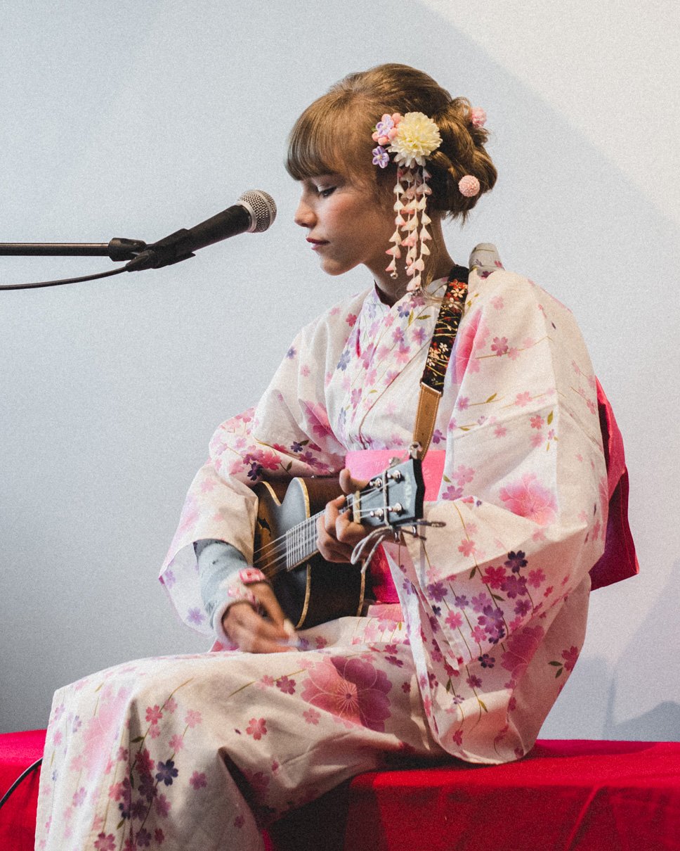 Grace performed for a small audience, most of whom had won tickets to the event, at Spotiify headquarters, Tokyo - in full kimono attire.